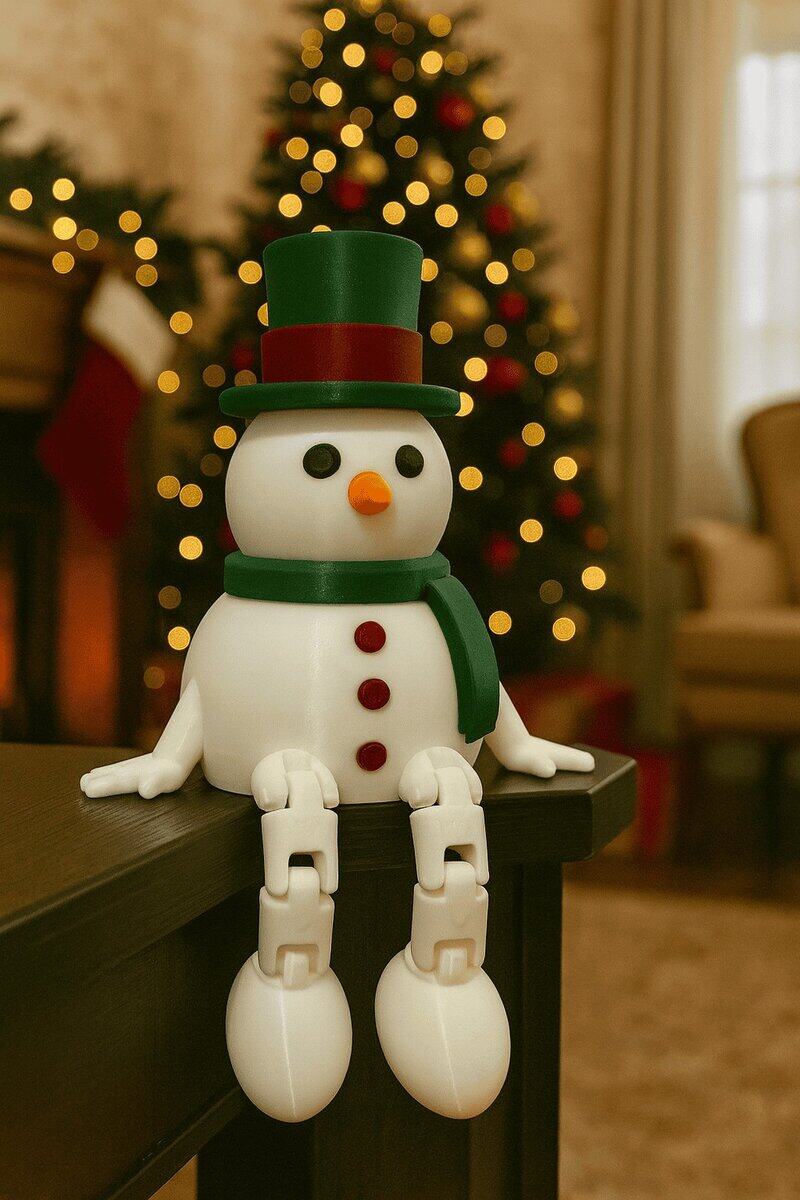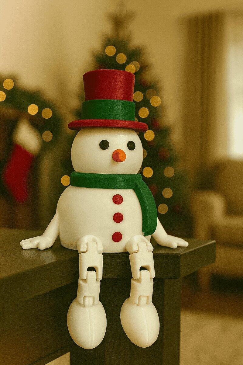 Cute 3D-printed Articulated 3D snowmen that sit on the edge of your shelf or table and bring Christmas magic to any room.