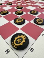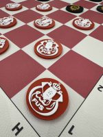 A unique 50×50 cm Moroccan Dama Football, with 4 cm diameter pieces representing Moroccan clubs (Raja, Wydad, FAR, FUS). Option to customize with your favorite team.